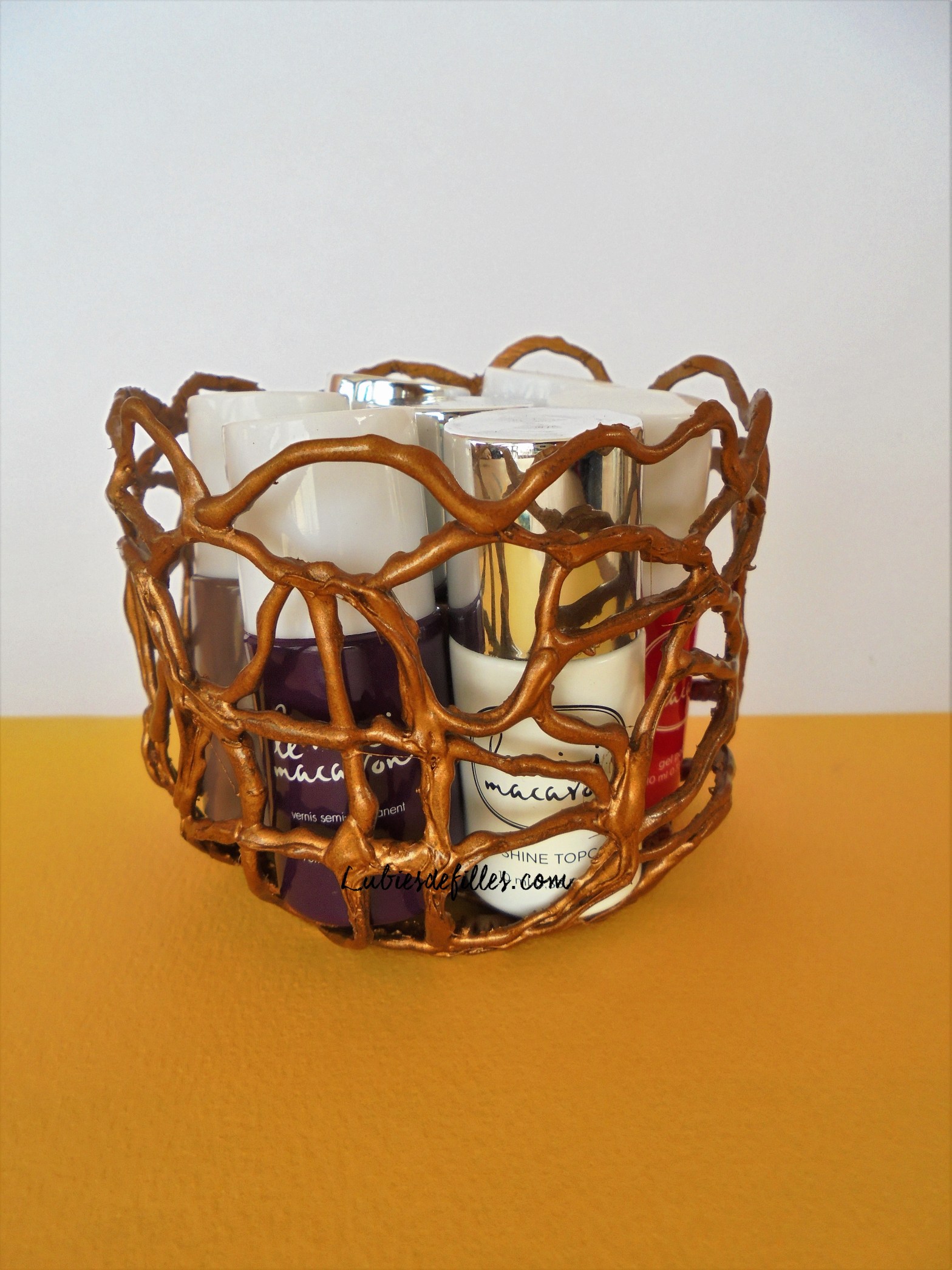-Bombez le vide poches, ou appliquez de la colle acrylique, laissez sécher, puis placez y ce que vous voulez dedans: vos clefs, vos bijoux, vos vernis à ongles…