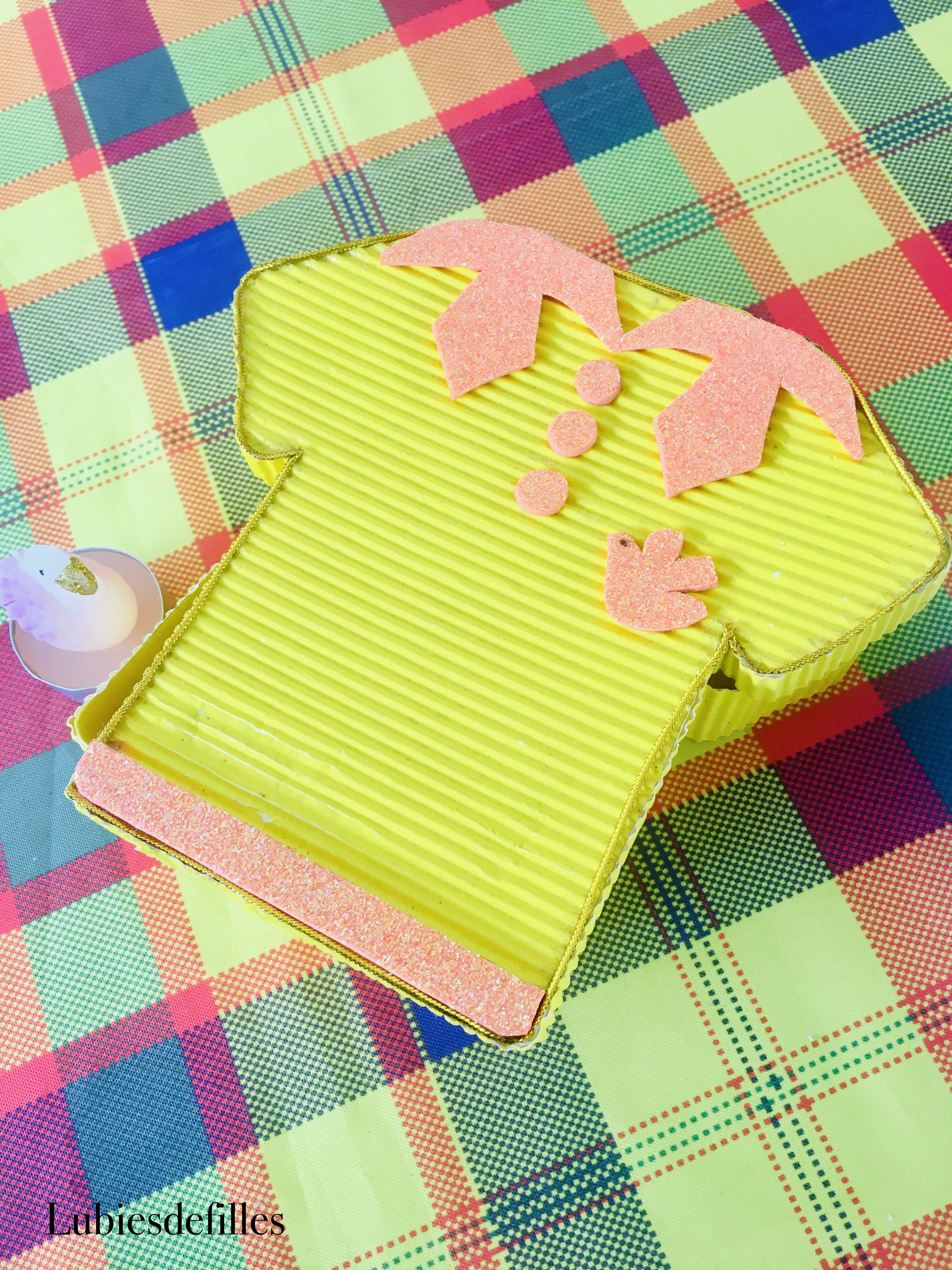 La réalisation est en terme de durée moyenne car il faut découper, assembler, coller, placer les doublures et les petites décoration.